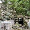 ②そこから発掘された石を博多の医師の荻野玄庵が庭石にし、死後は玄庵の墓石にされたが、その後祟りが起こって、一家が急な病で死に絶えた。