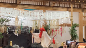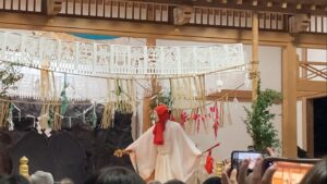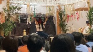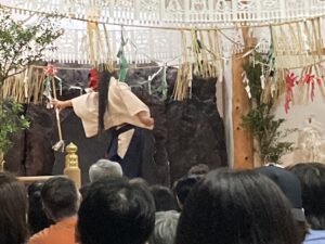 ここで天岩戸伝説にまつわる神楽は終わりです。