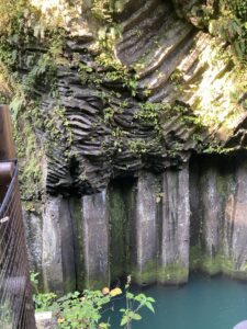高千穂の柱状節理は、阿蘇の噴火による火砕流が固まったものだということです。