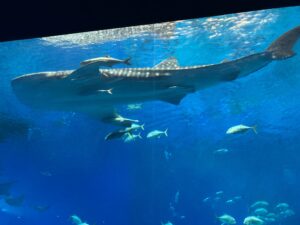 ちなみに、現在ジンベエザメが見られる日本の水族館は、美ら海水族館、かごしま水族館、海遊館の3館だけだそうです。