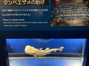 写真はジンベエザメの胎仔。お母さんのお腹の中で孵化した赤ちゃんです。デカイ。