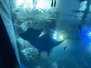 美ら海水水族館の二大スター・ジンベエザメとブラックマンタ