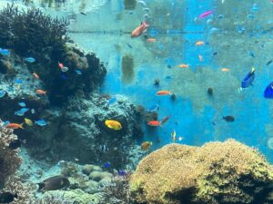 色鮮やかな熱帯魚が泳ぎ回るサンゴ礁の海が、そのまま再現されています。