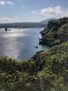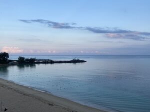 海がとても綺麗で、波の音がすぐ足元に聞こえます。