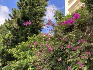 ホテルのお庭に咲いていたハイビスカスとブーゲンビリア。南国ムードあふれる素敵なホテルでした。