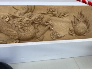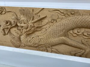 王の居間を飾る予定だという木彫りの龍。躍動感が凄い。
