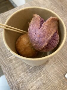 丸いドーナツのような揚げ菓子で、ホテルのビュッフェにも一口サイズのものがあったのですが、時間が経っているからかちょっと固く、どうしても揚げたてが食べたかったのです。