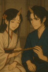 かすかなためらいを含んだ声。茨木童子さまの気持ちは痛いほど分かる。しかし、その言葉は、わたしの衝動に火をつけた。わたしは手を伸ばして笛を掴み、唇へと運んだ。あの方の唇に触れた笛だ。息を大きく吸い、吹き込んで……。